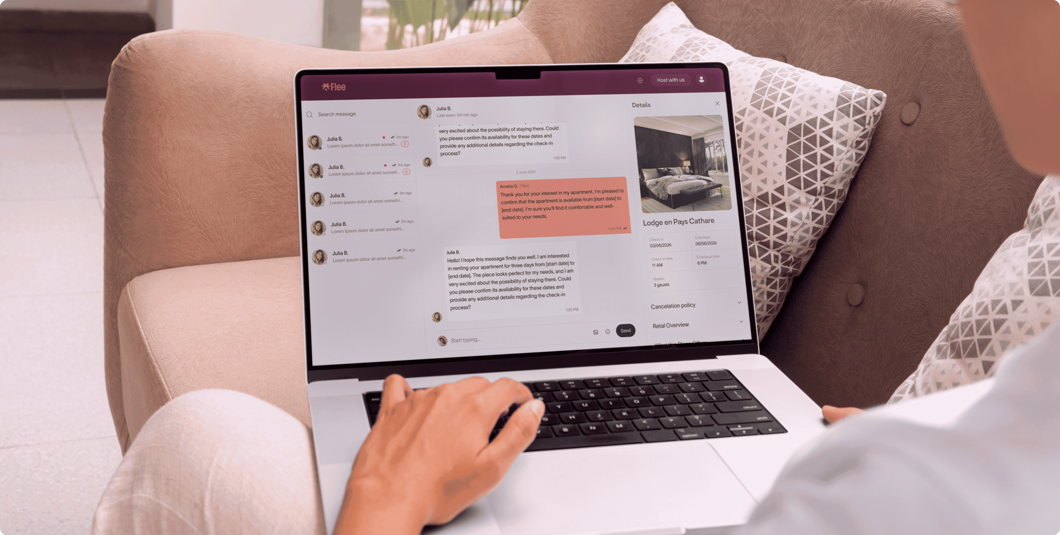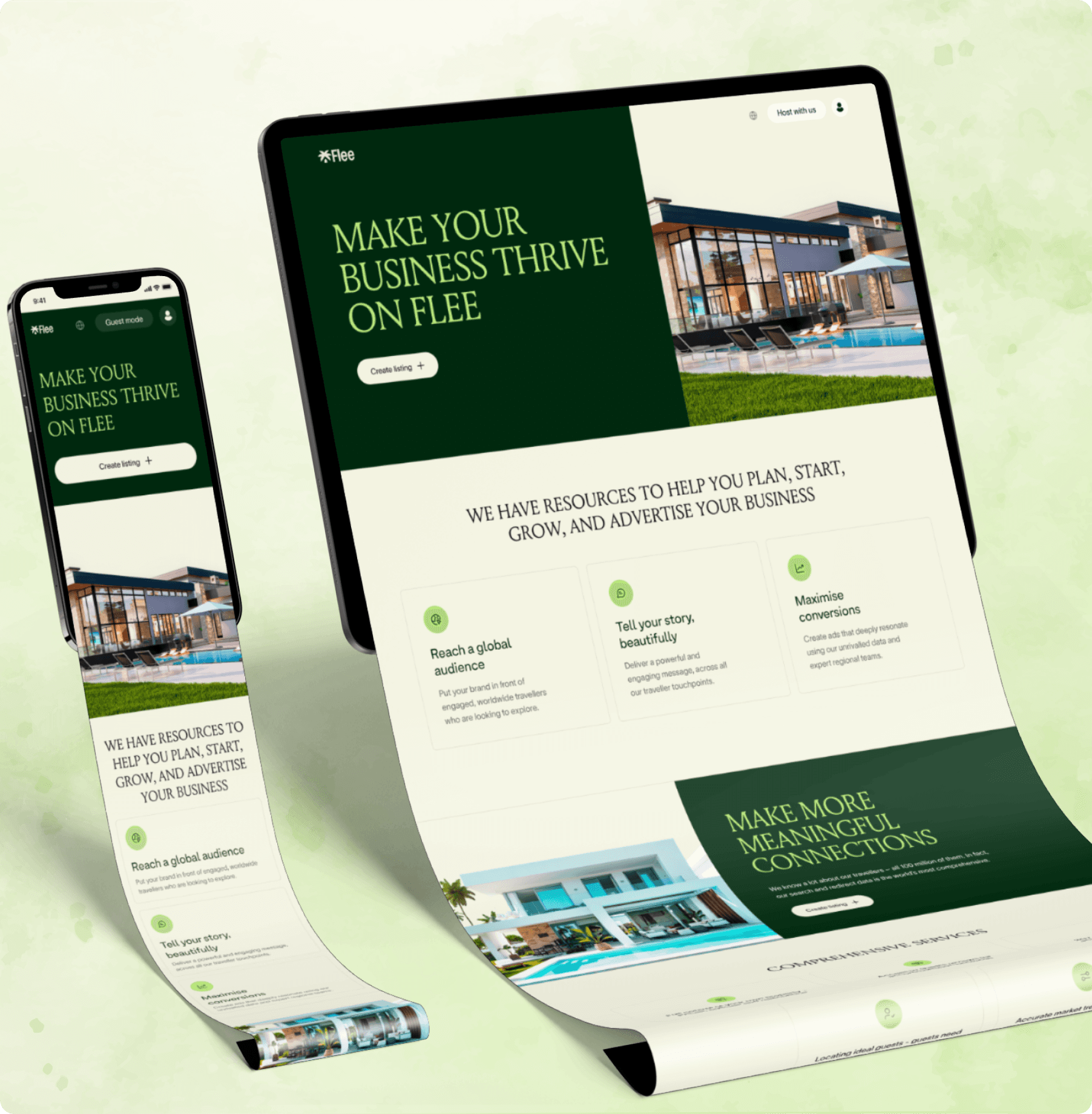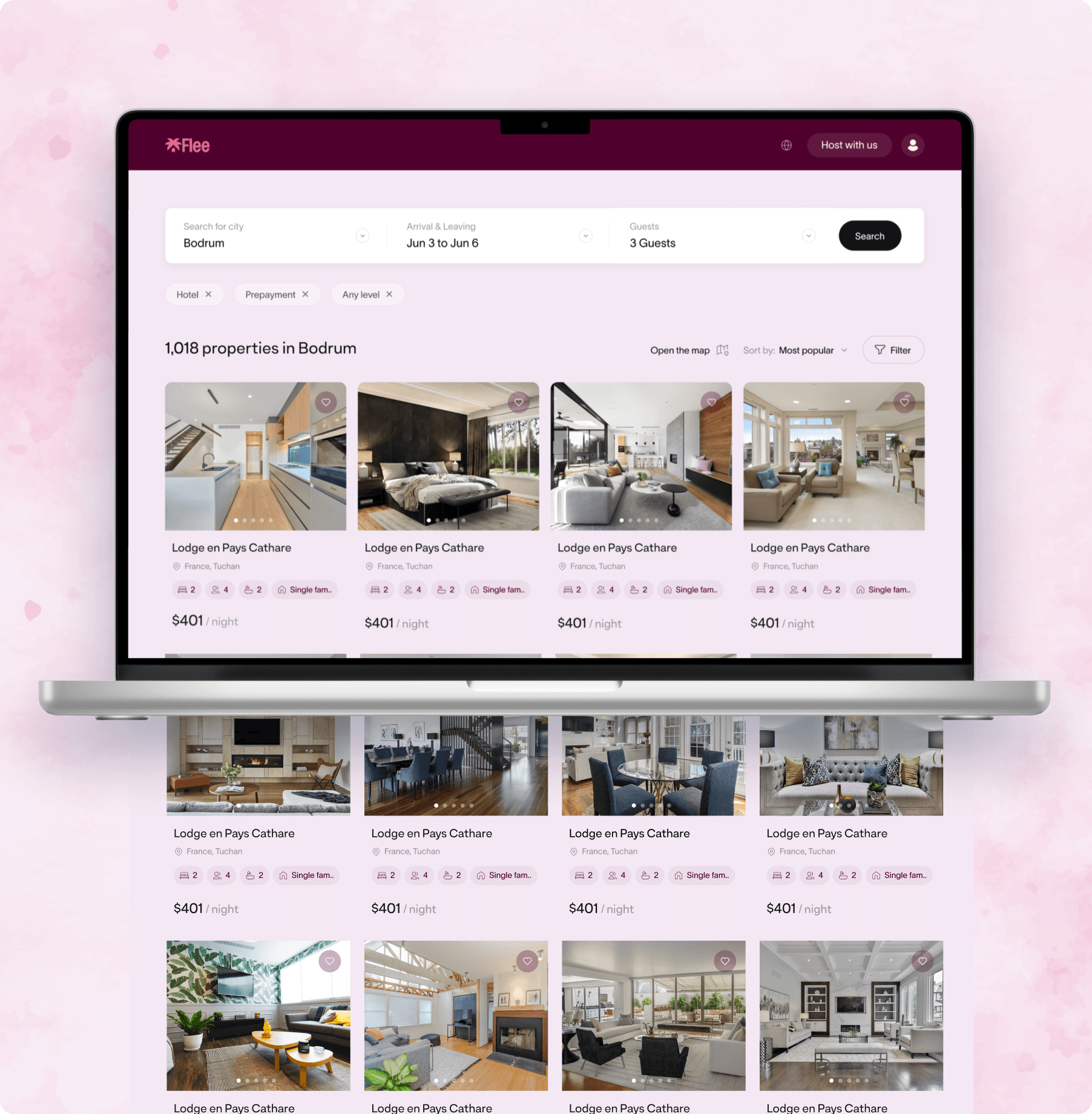 Flee is an online booking platform dedicated to kosher-friendly travel. Users can choose a city, set their travel dates, and select the number of guests to instantly receive a tailored list of accommodations that match their cultural and lifestyle needs. The design blends a modern visual style with intuitive search and filtering tools, ensuring a smooth and convenient booking experience on both mobile and desktop devices
