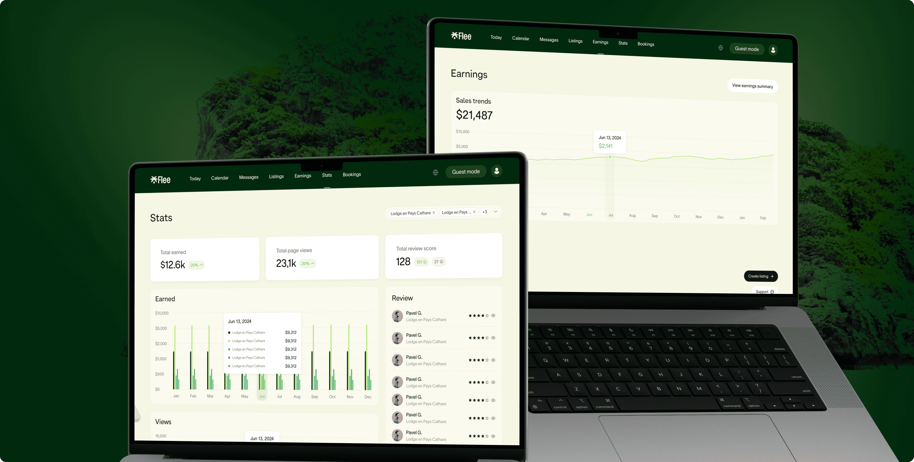 Designed the analytics and earnings dashboard to give hosts a clear, data-driven view of their performance. Key metrics—total earnings, page views, and review scores—are displayed in prominent, easy-to-read cards, helping hosts instantly assess their business health. Detailed charts break down earnings by property and over time, allowing for quick identification of trends and high-performing listings. The reviews section provides both scores and guest feedback in one place, making it easy to track satisfaction and spot areas for improvement. With a consistent layout and responsive design, hosts can monitor their performance, understand their audience, and make informed decisions from any device, ensuring they stay in control and maximize growth.