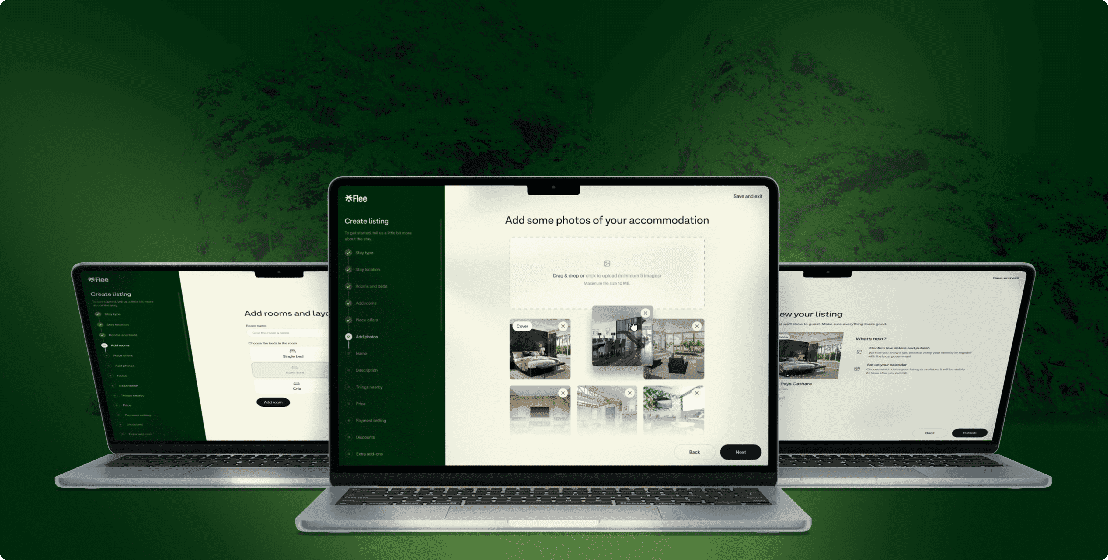 On the business landing page, hosts are introduced to the platform’s value through bold visuals and concise benefits—reaching a global audience, telling their story beautifully, and maximizing conversions. The consistent design and responsive layout work seamlessly across devices, making it easy for hosts to create, manage, and promote their listings, all while showcasing their property at its best. I designed the hosting interface to make listing a property straightforward and engaging for business owners. The step-by-step flow guides users through essential details—stay type, location, rooms, pricing, and amenities—before moving to a clean, visual photo upload stage. The image manager supports drag-and-drop functionality, clear size guidelines, and cover photo selection, ensuring every listing looks professional and appealing.