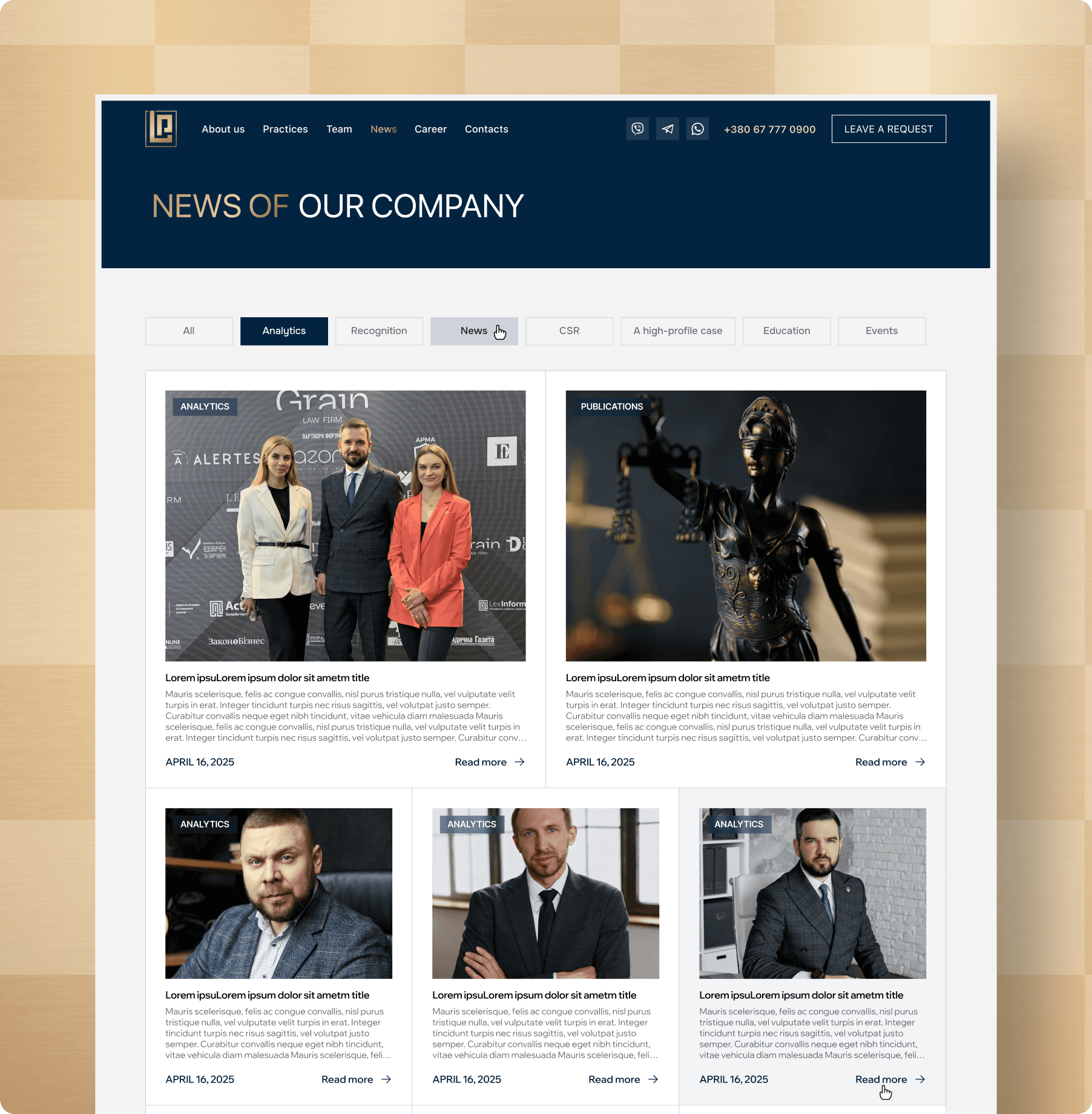 In addition to design, we also had to implement the site on WordPress. The layout was done through code, and an administrative part was created for the client's convenience. It allows the client to add news, vacancies, and make changes to the content on their own.